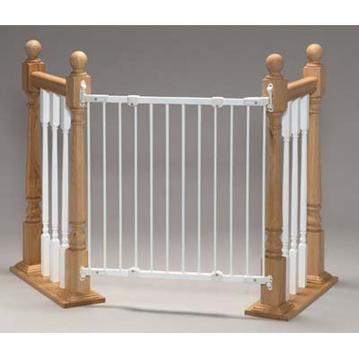 The Angle-Mount Safeway Baby/Pet Gate Model G22 is an extension of the KidCo Safeway series rated number one for the top of the stairs by a leading independent consumer organization. The G22 has Angle-Mount hardware that allows the metal gate to be installed in any position, including angled banisters and walls. The hardware allows the gate to swing both ways and has a stopping feature to prevent the gate from swinging over the stairs. The hardware also allows the safety gate to be quickly released from its mountings as desired. It stands 31" high and is constructed of strong tubular steel. Perfect for the top of stairs, as a window barrier, or at a doorway. Mount directly to walls and banisters or add a gate mounting kit if you have hollw walls, baseboards, or don't want to screw into your banisters or woodwork. One-hand adult operation of child-proof latch. Basic gate fits openings 28" - 42.5". Optional extensions available for larger openings. Available in White or Black.